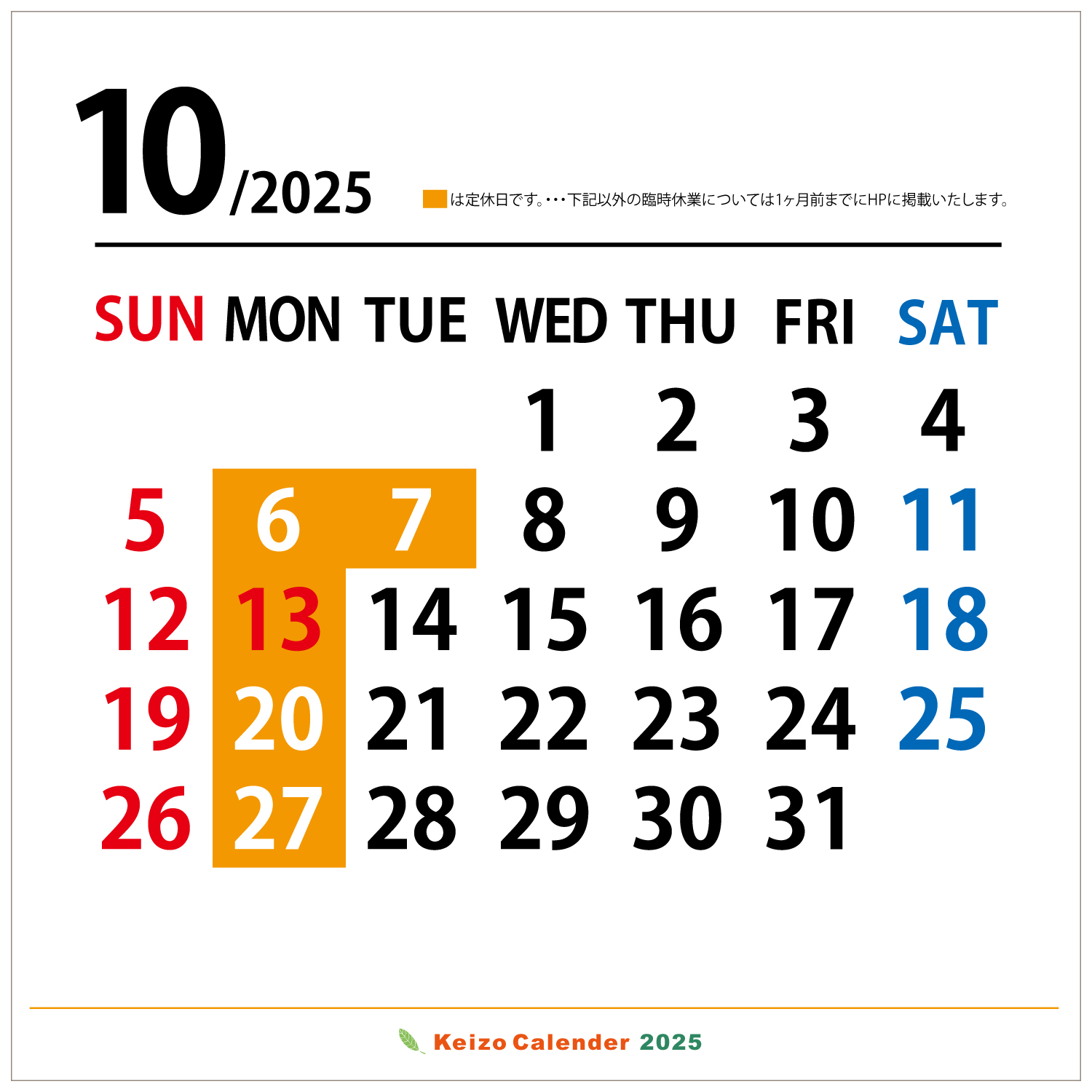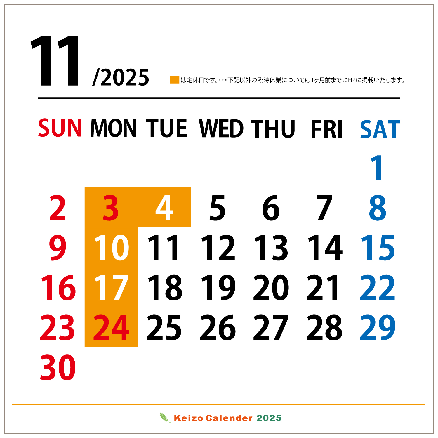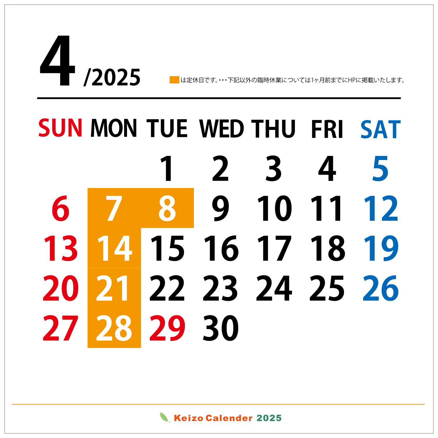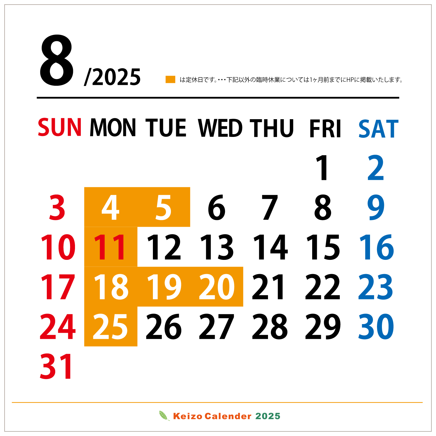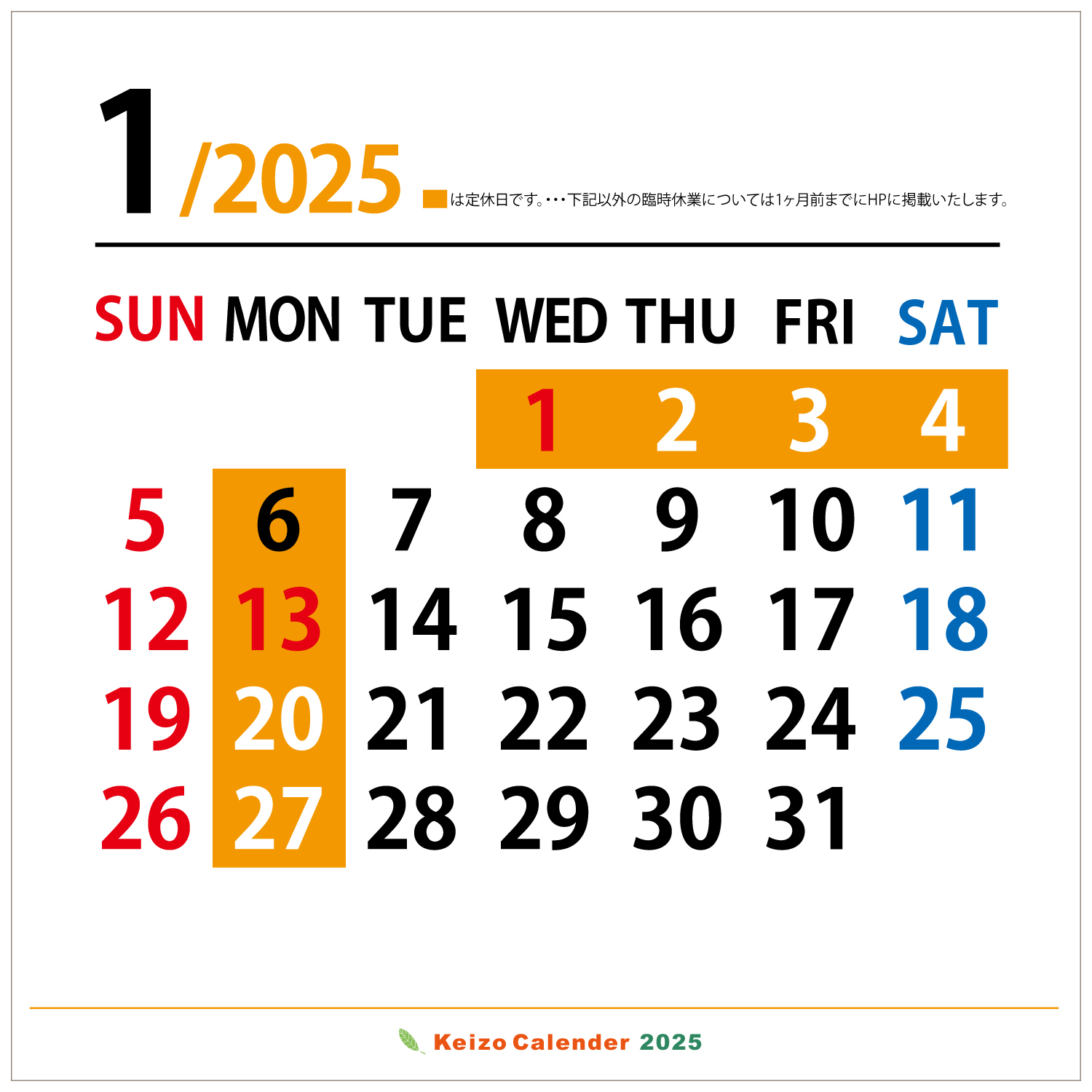 年間カレンダー